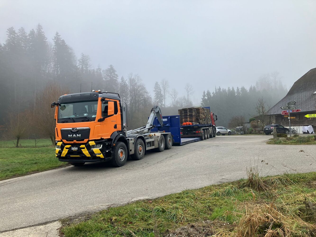 Unser 4-Achs-Ladekran ermöglicht präzise Hebe- und Montagearbeiten selbst auf engem Raum